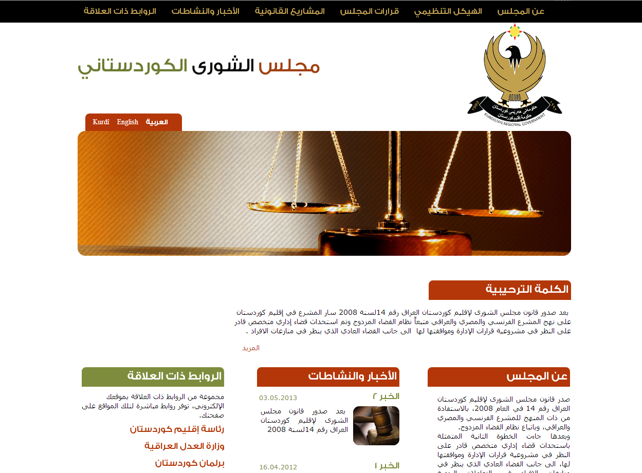 Trilanguage (Arabic, English, Kurd) Database Driven HTML website Link: http://www.shurakurdistan.org/Image: Type: WebsitePreview Image: Year: 2012Category: GovernmentalYearField: 2 012